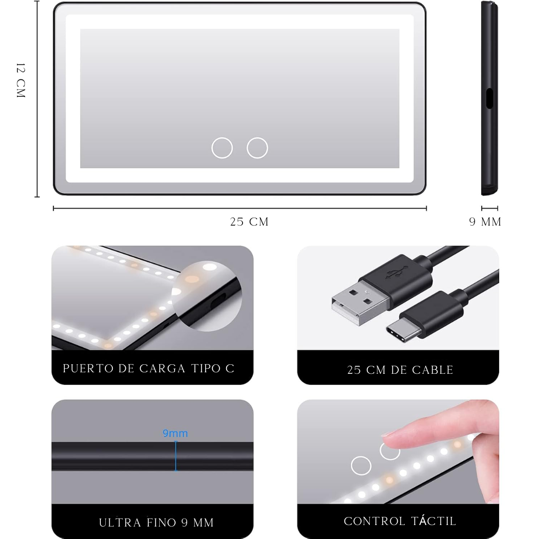Sí 💄 Cuenta con LEDs blancos de alta calidad y 3 tonos de luz que imitan iluminación real, ideal para maquillaje natural y sin sombras.